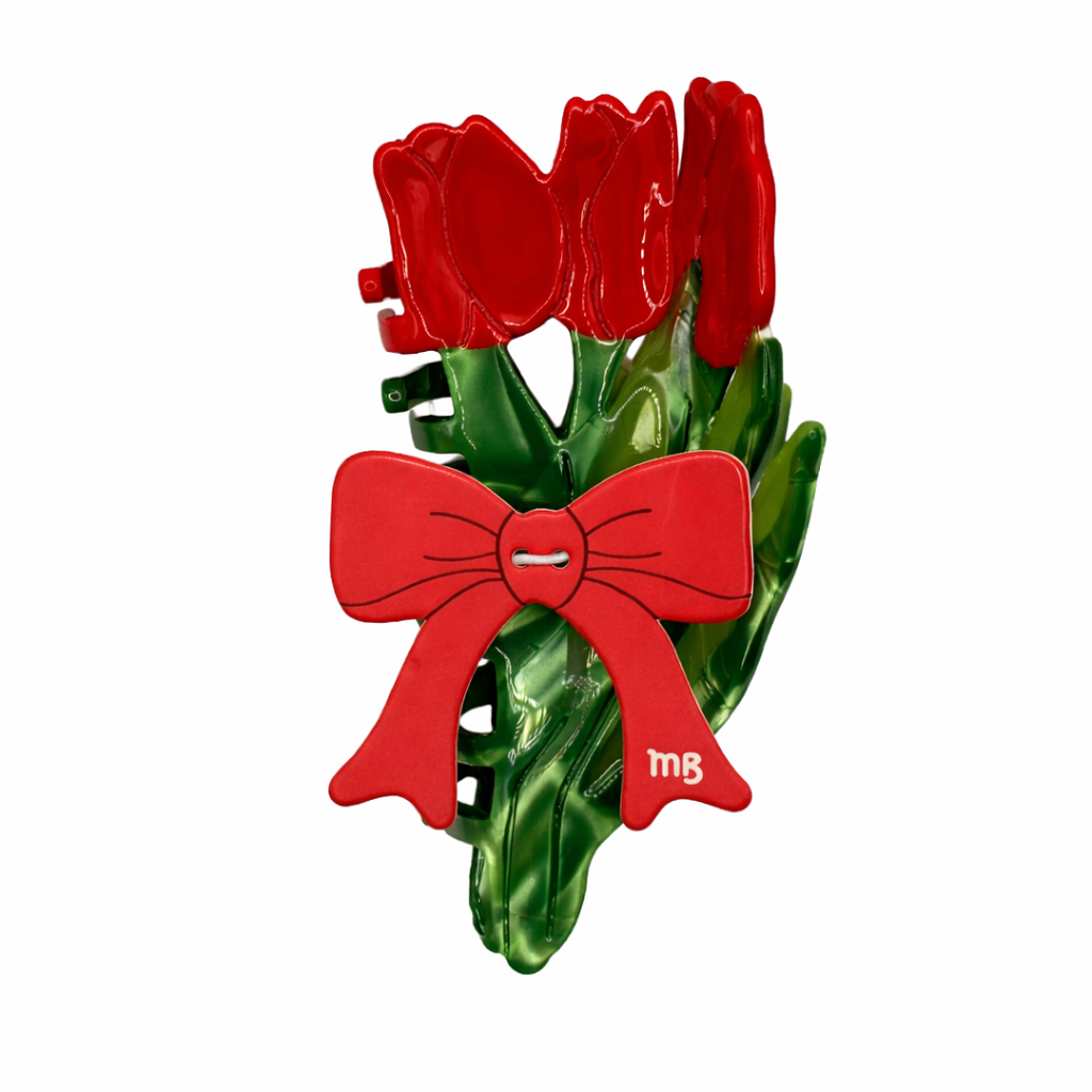 The Tulip Hair Claw features a glossy bouquet of red tulips with marbled green stems, designed to feel bold, graphic, and easy to wear. Inspired by the flower buckets lining city sidewalks in early spring, it’s the kind of piece that instantly pulls a look together — no overthinking required.